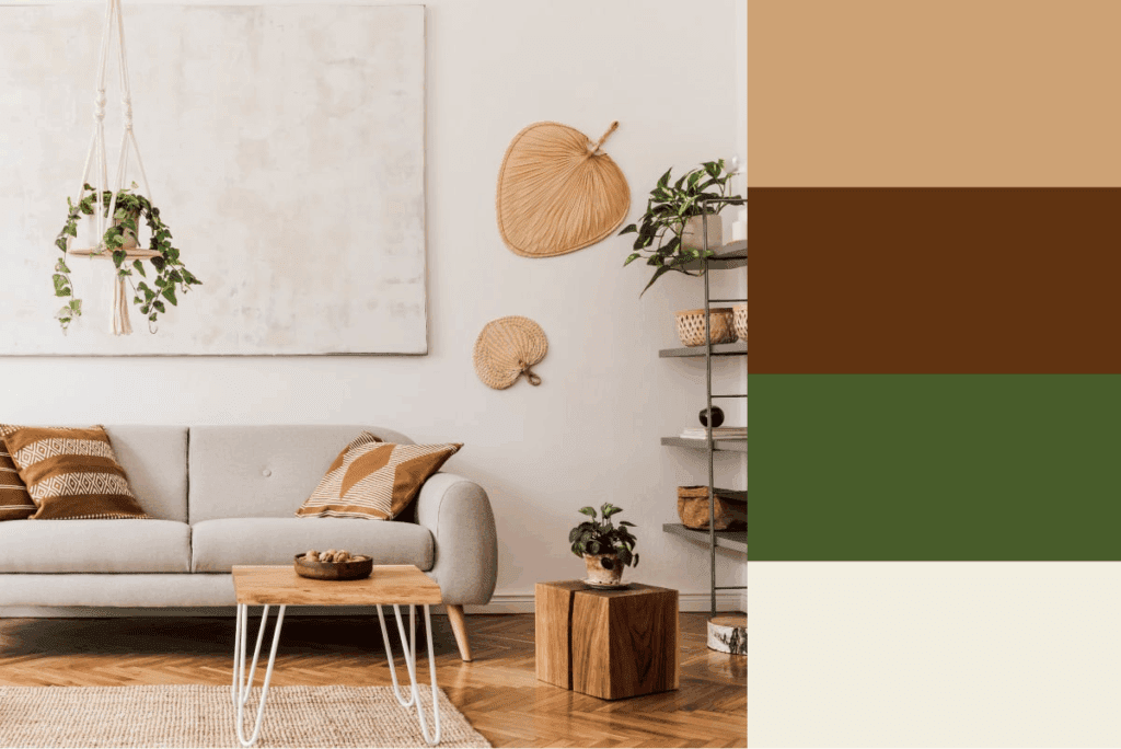 Warm neutrals, soft terracottas, and deep olive greens are dominating interiors. These tones provide a calming, grounded feel that works beautifully across living rooms and bedrooms alike.