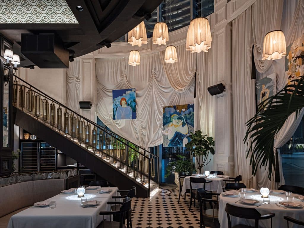 Located in DIFC, La Niña is a theatrical celebration of Iberian and Latin American heritage. The interiors are a sensory journey characterized by intricate azulejo tiles, rich velvet drapery and stained glass that bathes the space in a warm glow creating a storied atmosphere that feels like stepping into a hand-painted portrait of the Old World. Rather than a static dining room it feels like a curated set piece, where every architectural detail, from the ornate flooring to the textured walls, tells a tale of seafaring history and cultural fusion. It is a destination that proves traditional craftsmanship can be just as avant-garde as modern sculpture.