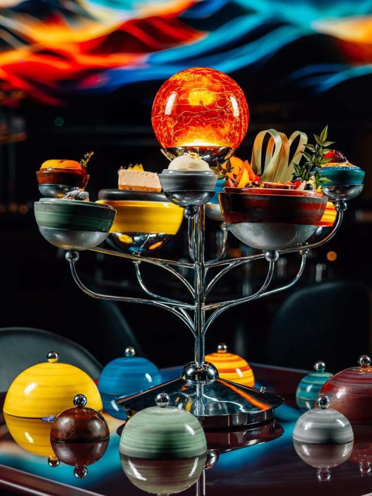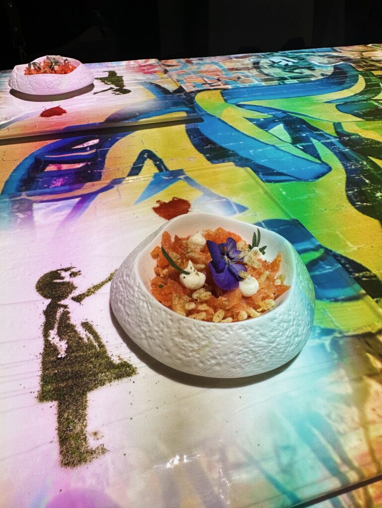 True to its name, Dinner Tales at Sofitel Hotel Downtown turns the table into a canvas. The two-hour dining journey utilises advanced 3D projection mapping, a concept the venue calls ‘Dineamation’, to transform the tabletop into a living canvas where masterpieces by legends like Michelangelo, Banksy, Picasso and Warhol spring to life.