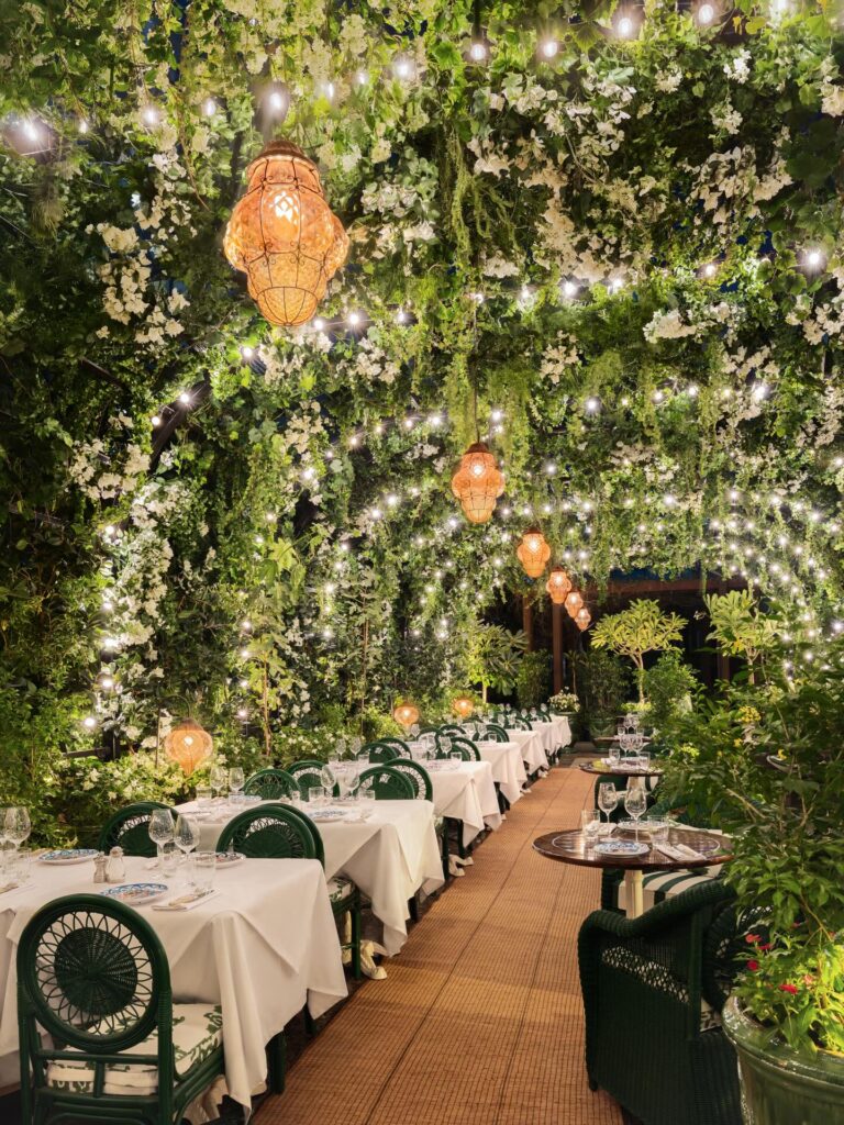Bringing the cinematic flair of 1970s Milan to DIFC, Gloria Osteria is lit by 135cm Murano chandeliers that bathe the room in a nostalgic glow. The space is peppered with archival fashion memorabilia and reflective mirrors, creating a Sicilian garden atmosphere that is remnant of a choreographed set piece. With its lush greenery and vibrant textures, the restaurant functions as a carefully composed frame.