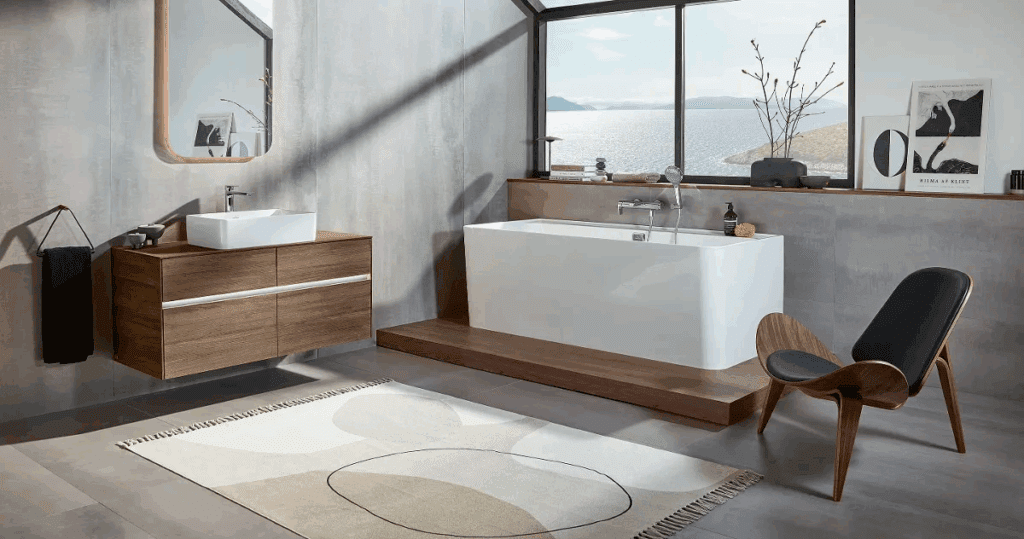 Sophie shows us the small details that complete the look. “Luxury is really in the little touches,” she says. “Even something as simple as a bath tray, a plush robe on a hook, or a stylish soap dispenser can elevate your everyday routine.”