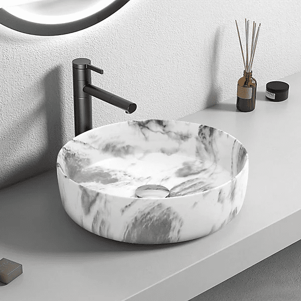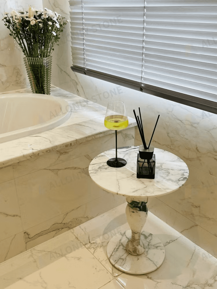 - Lusso – Grey Marble Bathroom Side Table 380mm